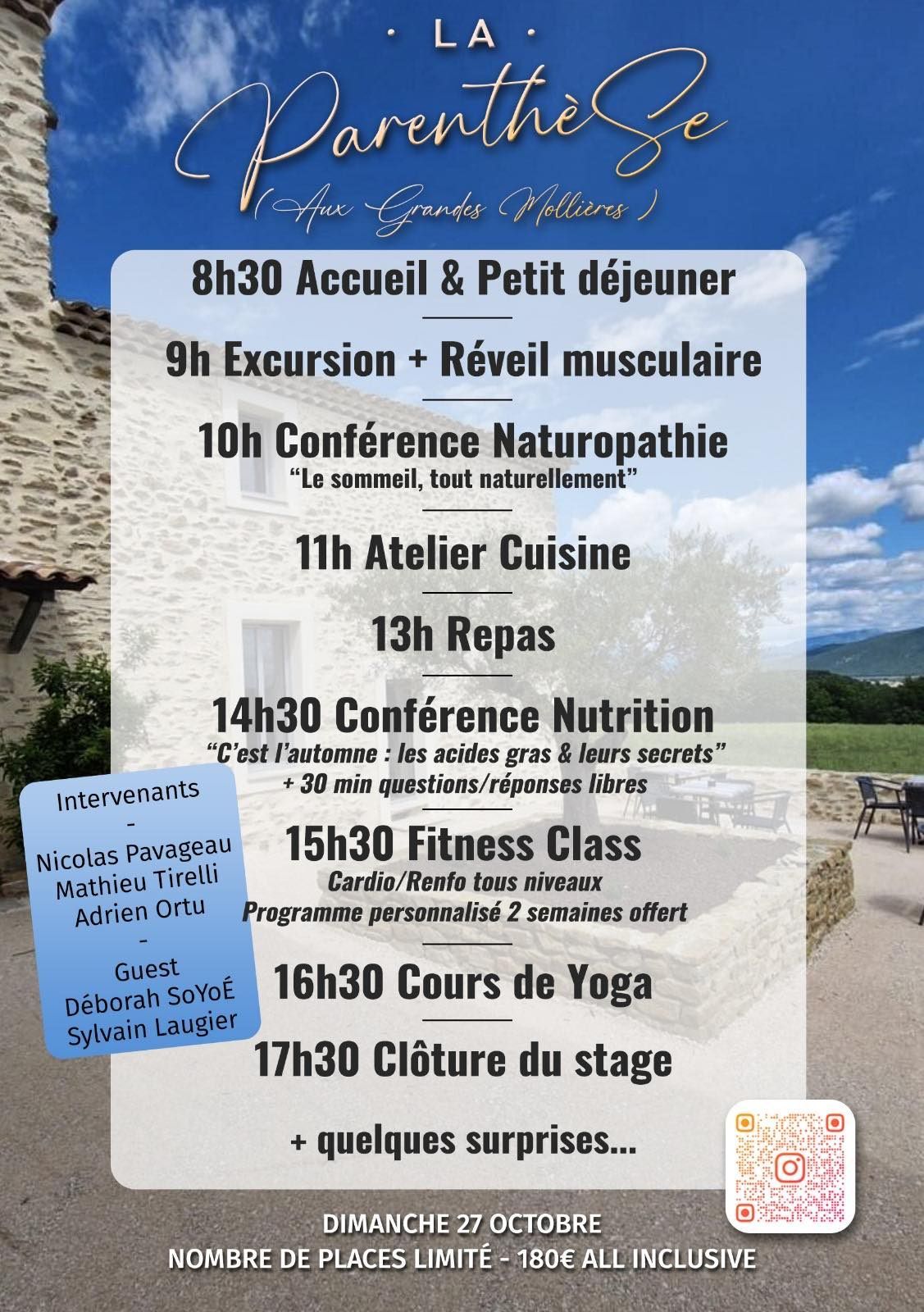 Sur Réservation, places limitées à 14 personnes : Je réserve